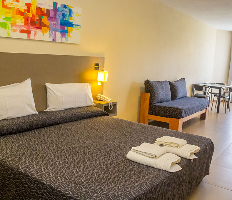 Contamos con cocheras cerradas para garantizar la seguridad de su vehículo, además de gimnasio y un placentero Jardín con Pileta & Asador para disfrutar de amplios espacios verdes durante su estadía.